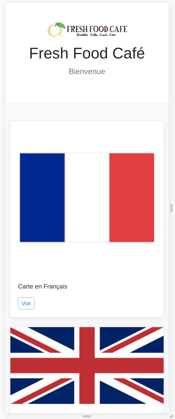 Vos clients accèdent à un site web responsive (le format s'adapte à votre smartphone) présentant vos menus tel que vous les avez définis dans le backoffice.